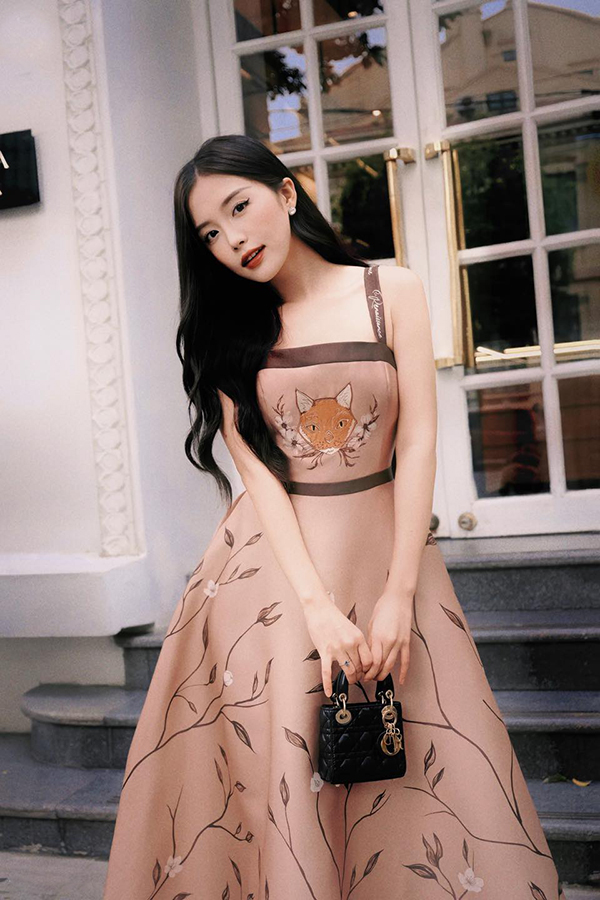 Thiếu nữ ngồi áo dài hoa